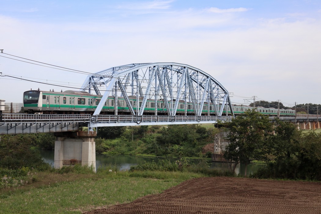 水戸線の鬼怒川鉄橋を行く国鉄特急色ふうE653系1000番台車K70編成。