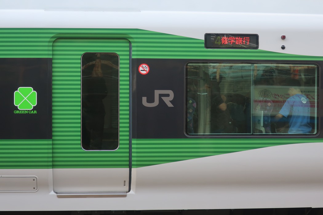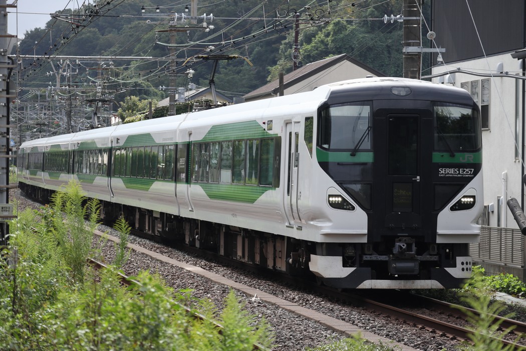 続行で日光に向かう集約臨のオオE257系5000番台車OM-91編成。宇都宮で進行方向が変わっています。